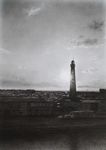 De vuurtoren van IJmuiden met ondergaande zon boven de zee - Houtskool